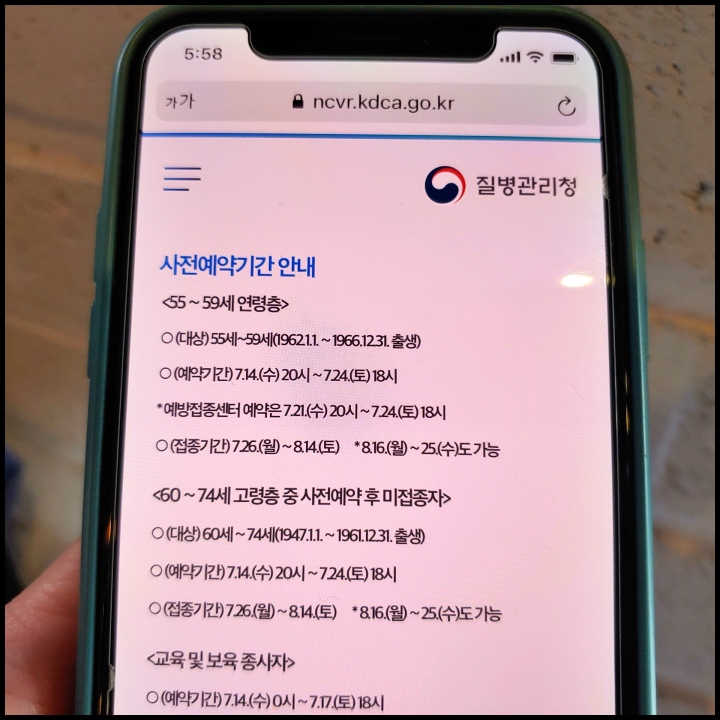 접종 일정은 기존에 8월 9일부터 8월 21일까지였으나 그 기간이 변경되어 8월 16일부터 8월 25일까지라고 합니다.