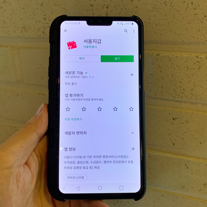 우선, 디지털 서울지갑 앱은 현재 안드로이드폰에서 활용 가능합니다. 안드로이드폰에 기본적으로 탑재된 구글 플레이 스토어 통해서 해당 앱을 설치하시면 됩니다. 애플 아이폰에서는 앱스토어가 기본 탑재되는데 서비스 이용까지 기다려야 할 것으로 보입니다. 최소사양은 안드로이드 OS 6.0 이상, 아이폰 OS 11 이상 사용 가능합니다.
