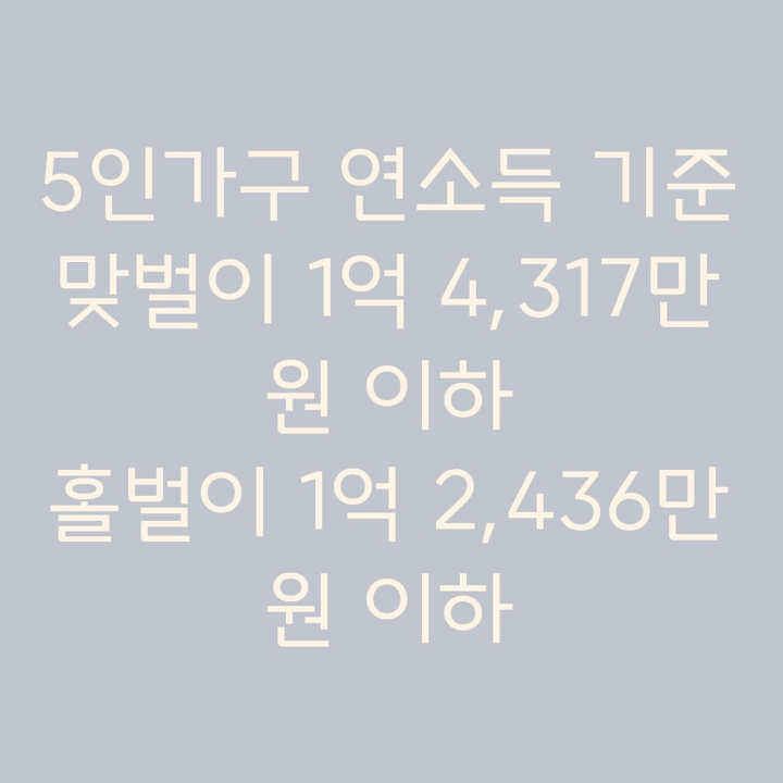 2인가구, 3인가구, 4인가구, 5인가구 연소득 기준 및 맞벌이 홀벌이 가구 이렇습니다. 5차 재난지원금 대상 총정리 관련하여 해당 지원금 기준이 어떻게 되는지 대략적으로 가늠할 수 있습니다.