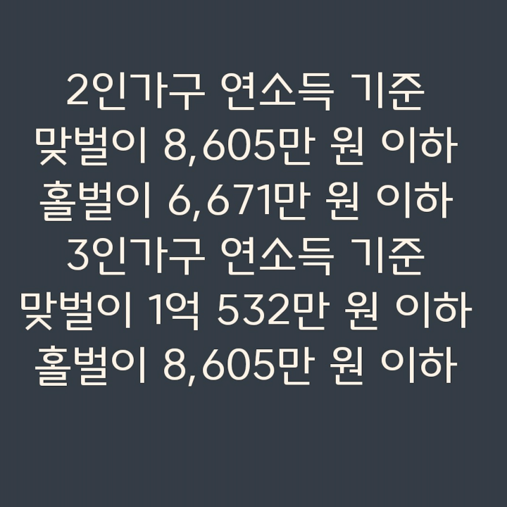 맞벌이부부 소득 하위 88% 기준금액 외벌이보다 더 좋을 것으로 알려졌습니다. 2인가구 맞벌이 연소득 8,605만 원 이하가 5차 재난지원금 받을 수 있는 것으로 알려진 반면 외벌이는 6,671만 원 이하입니다. 3인가구 맞벌이 연소득 1억 532만 원 이하일 경우 이번 5차 재난지원금 대상 포함되나 외벌이는 8,605만 원 이하입니다. 4인가구 맞벌이 연소득 1억 2,436만 원 이하라면 이번에 대상 포함되나 외벌이는 1억 532만 원 이하로 알려졌습니다.