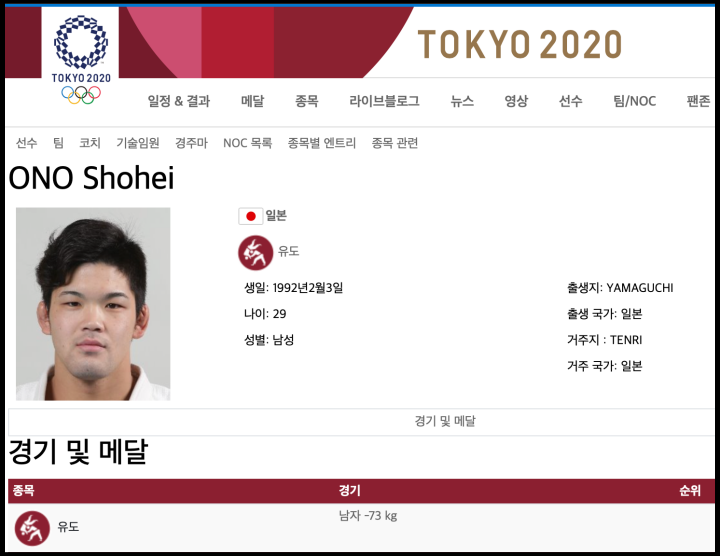 [사진 = 오노 쇼헤이 (Ono Shohei, 大野将平) 도쿄 올림픽 남자 유도 73kg급 강력한 금메달 후보로 거론되는 인물입니다. 5년 전이었던 2016 리우 올림픽에서는 해당 부문 금메달을 달성했습니다. 이번 올림픽에서는 2연패 도전합니다. 자국에서 펼치는 올림픽이기 때문에 금메달 달성을 위해 사력을 다할 것으로 보입니다. 오노 쇼헤이의 강력한 도전자는 안창림 입니다. 오노 쇼헤이 2연패 달성할지 아니면 안창림 강력한 도전이 부도칸에서 통할지 주목됩니다. (C) 도쿄 올림픽 공식 홈페이지 프로필 사진]