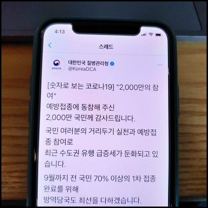 [사진 = 대한민국 질병관리청 공식 트위터에서는 다음달이 되는 9월 중에 전 국민 70% 1차 접종 조기 달성 및 11월 집단면역 달성을 목표로 한다고 밝혔습니다. 9월 안으로 18~49세 1차 접종 인원이 많이 늘어나기 때문에 전 국민 70% 접종 가능성을 기대할 수 있습니다. (C) 대한민국 질병관리청 공식 트위터]