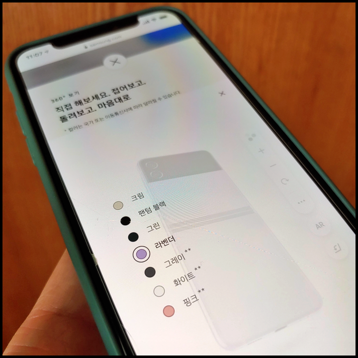 -색상 : 팬텀 블랙, 크림, 라벤더, 그린(기본 색상 4가지) 그레이, 핑크, 화이트(삼성닷컴 갤럭시 Z플립3 단독 색상 3가지)