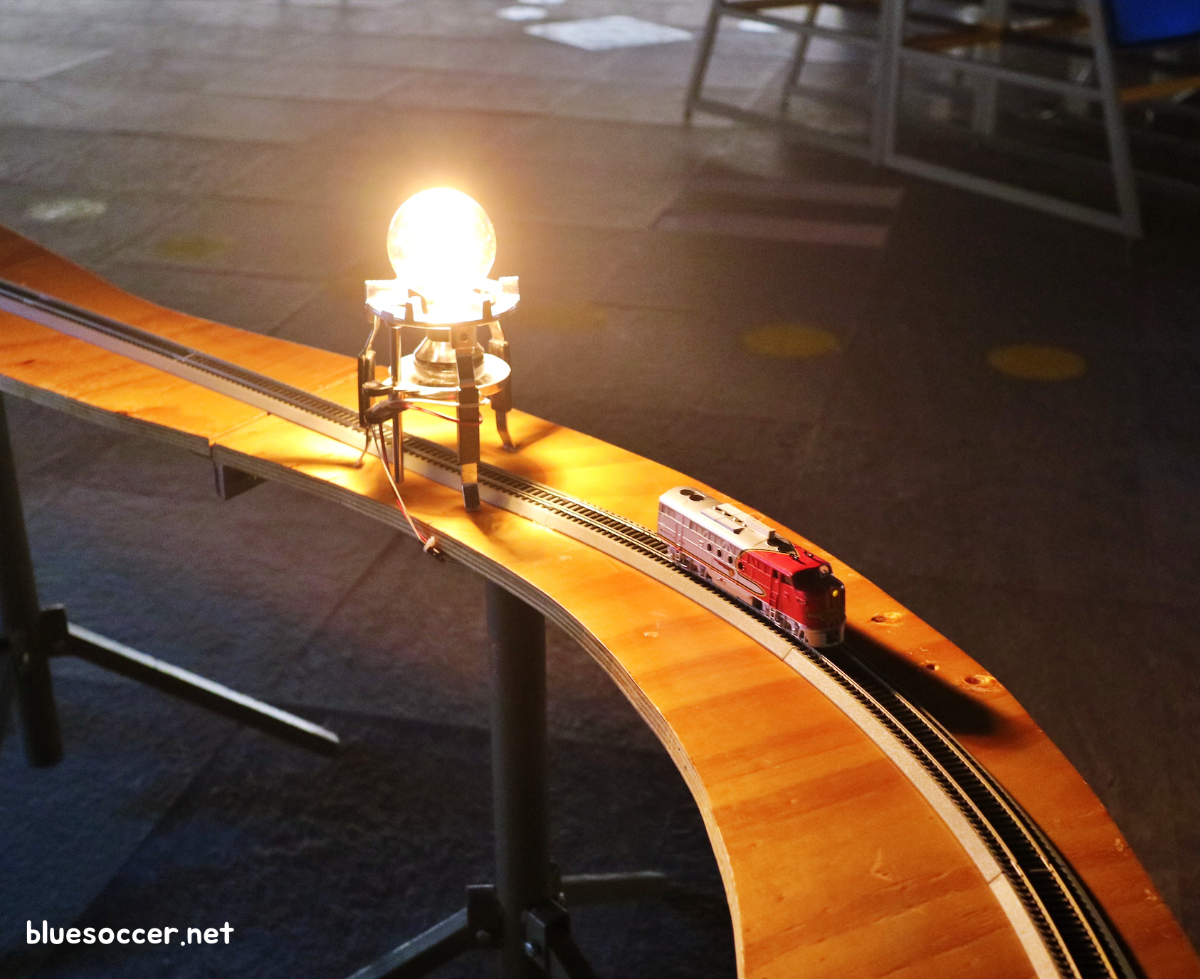 어렸을 적에 장난감 기차가 지나다니는 놀이를 해보셨던 분들이 많으셨을 겁니다. 그래서인지 친근하게 느껴졌는데 이 작품은 <주술적이거나 전기적인 장치>(김태은, 2015-2021) 입니다. 기차가 트랙을 계속 지나다니는데 그 가운데에 있는 투명한 공이 기차를 움직이게 해준다고 합니다.
