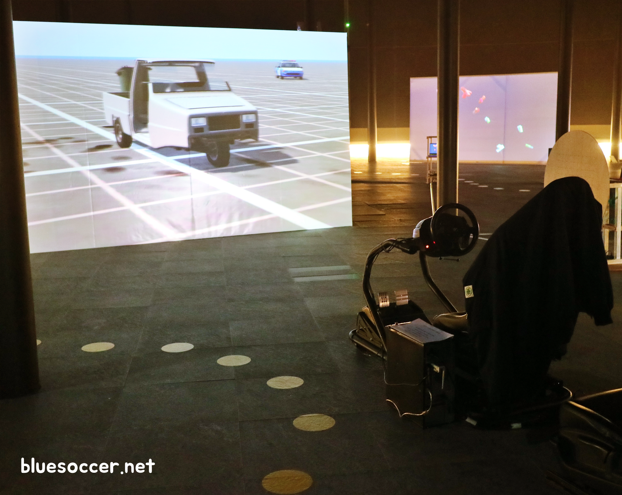 이 작품은 <너의 선택이 그렇다면>(안성식, 2021) 입니다. 마치 놀이공원에서 놀이기구를 이용하는 듯한 기분이 느껴졌습니다. 운전석에 앉아서 화면을 바라보며 의자가 받는 충격을 접할 수 있기 때문입니다. 영상에 나와 있는 자동차 움직임이 관람객 신체에 전달하는 시뮬레이터라고 합니다. 알고보니 크롤링, 빅데이터, 온라인 시뮬레이션 게임 등의 뉴미디어 기술을 활용한 관람객 참여 플랫폼이라고 합니다.