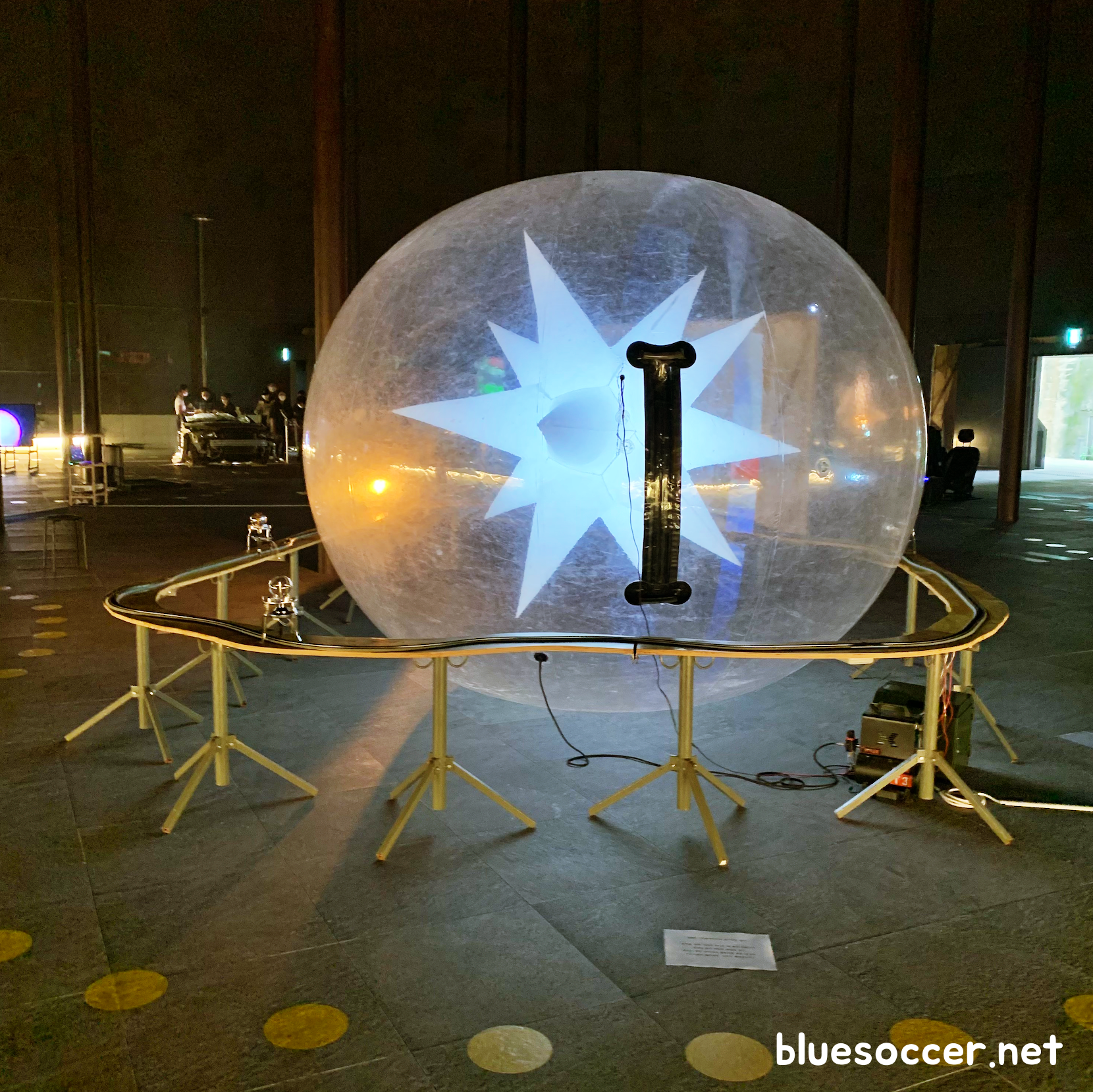 어렸을 적에 장난감 기차가 지나다니는 놀이를 해보셨던 분들이 많으셨을 겁니다. 그래서인지 친근하게 느껴졌는데 이 작품은 <주술적이거나 전기적인 장치>(김태은, 2015-2021) 입니다. 기차가 트랙을 계속 지나다니는데 그 가운데에 있는 투명한 공이 기차를 움직이게 해준다고 합니다.