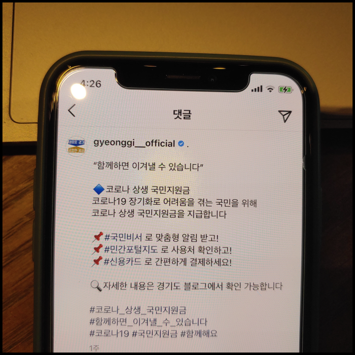 [사진 = 경기도는 최근 공식 인스타그램을 통해 정부의 코로나 상생 국민지원금 지급 소식을 전했습니다. (C) 경기도 공식 인스타그램]