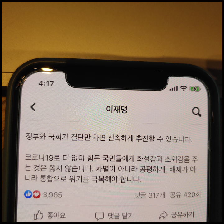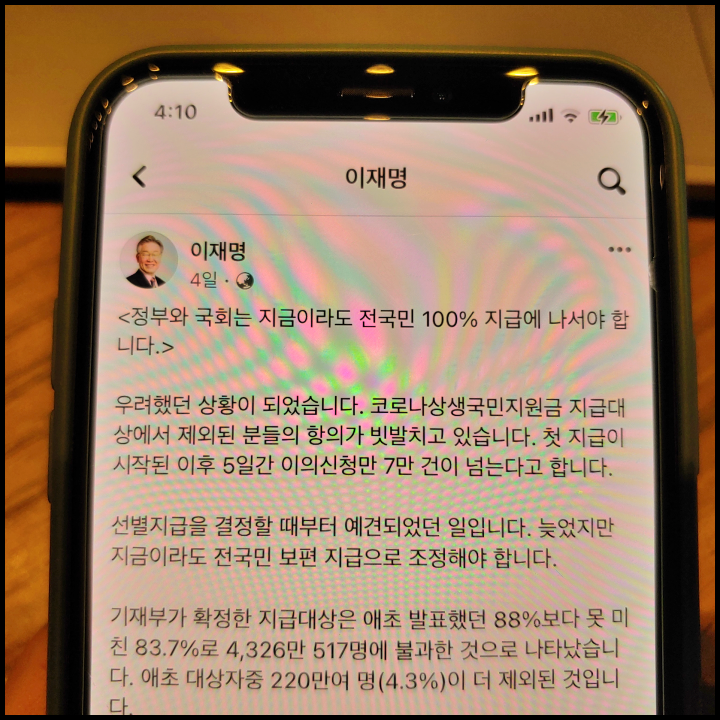 [사진 = 이재명 경기도지사는 4일 전 공식 페이스북을 통해 정부의 재난지원금이 전국민 지급 형태가 되어야 한다고 주장했습니다. 특히 코로나 상생 국민지원금 이의신청 같은 경우 그것을 받아준다고 혼란을 해결할 수 없다며 지급대상 90%까지 늘려도 마찬가지라고 밝혔습니다. (C) 이재명 경기도지사 공식 페이스북]