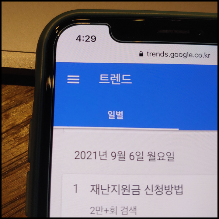 [사진 = 구글 트렌드를 보면 9월 6일 주요 검색어 1위가 정부 재난지원금 관련된 키워드였습니다. 많은 사람들이 이날 신청했음을 알 수 있습니다. 반면 소득 상위 12% 포함되는 분은 신청하지 못했습니다. 이에 경기도가 소득 상위 12% 해당하는 경기도민을 대상으로 1인당 25만원씩 지급 예정이라고 밝혔습니다. (C) 구글 트렌드]