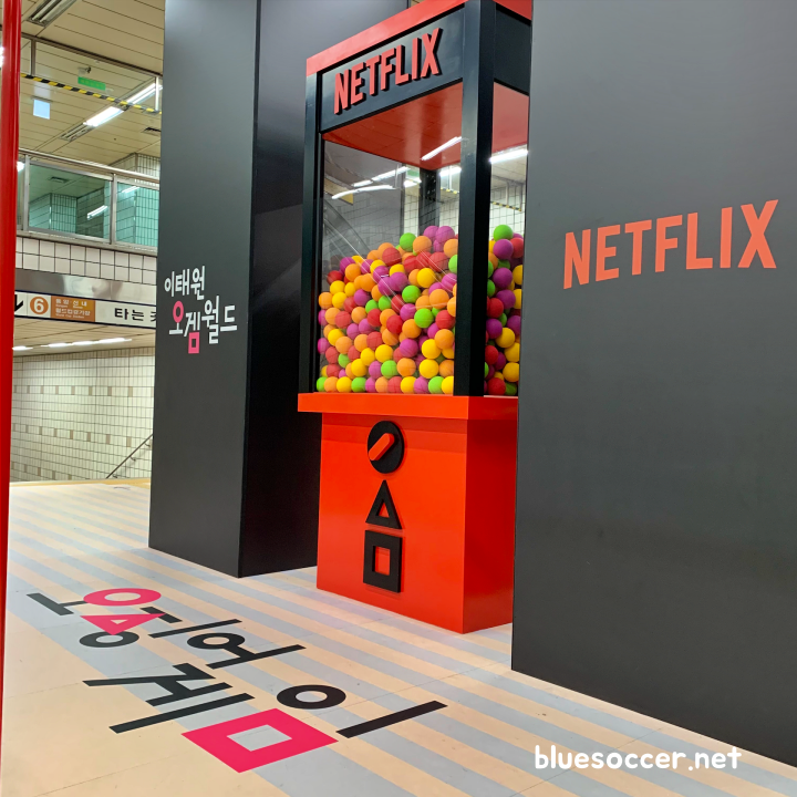 [사진 = 이태원역에 마련된 넷플릭스 오징어게임 체험존 모습 (C) 나이스블루]