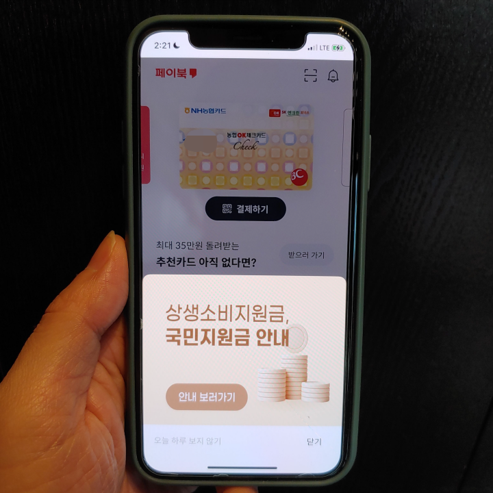 [사진 = 페이북 앱에서 상생소비지원금 신청 메뉴 찾는 방법은 쉽습니다. 홈 화면에 이러한 문구가 있기 때문입니다. (C) 페이북 앱]