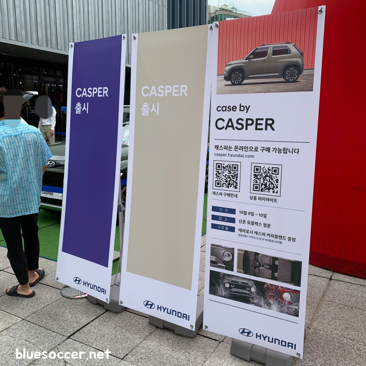 저는 지난 주말에 서울 현대백화점 유플렉스 신촌점 앞에서 현대 캐스퍼(HYUNDAI CASPER) 프로모션 행사가 진행된 모습을 봤습니다. 이날 신촌을 방문했는데 우연히 캐스퍼 전시된 모습을 봤습니다. 그동안 인터넷으로만 해당 자동차를 봤었는데 드디어 현대 캐스퍼 실물 직접 봤습니다. 개인적으로 작은 크기의 자동차 선호했기 때문에 그동안 '언젠가 캐스퍼 운전할 날이 올까?'라는 생각을 해봤습니다. 그러더니 신촌에서 현대 캐스퍼 직접 봤습니다. 마치 운명같은 얘기인 것 같습니다. 해당 자동차 프로모션 개최 장소가 현대백화점 유플렉스 신촌점이었는데 아무래도 현대 계열이라 그런지 이러한 프로모션이 가능했나 봅니다.