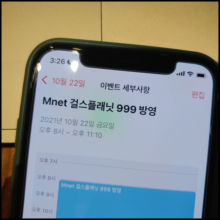 [사진 = 2021년 10월 22일 Mnet 걸스플래닛 999 마지막회 방영됐습니다. 사진은 저의 스마트폰 달력이며 2021년 10월 22일을 가리킵니다. (C) 나이스블루]