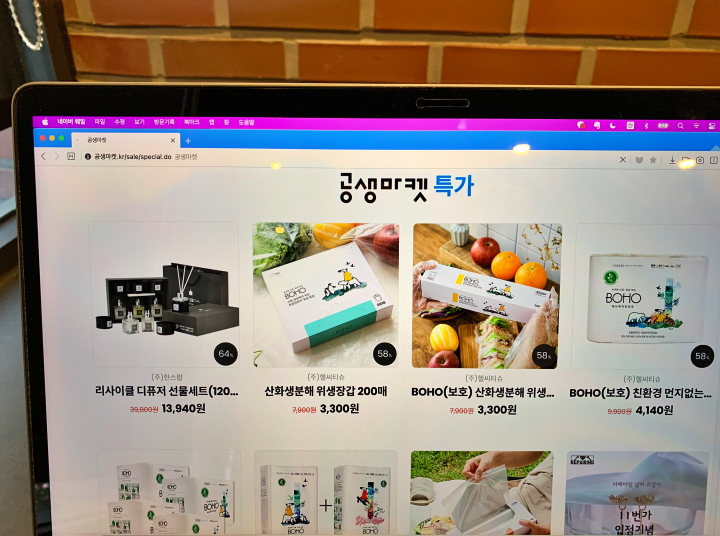 공생마켓 특가 또한 할인이 잘 나왔습니다. 상품에 따라서는 64% 할인되는 존재도 있었습니다. 알고보면 다양한 상품들이 파격적인 할인 금액으로 나왔습니다. 어떤 상품은 친환경을 강조하기도 했습니다. 최근 사회적인 트렌드에 잘 맞는 상품이 나온 듯 합니다. 타임세일과 더불어 공생마켓 특가에서 선보이는 상품들을 보면 서울시 대표 사회적경제 쇼핑몰 함께누리몰과 연계됐습니다.