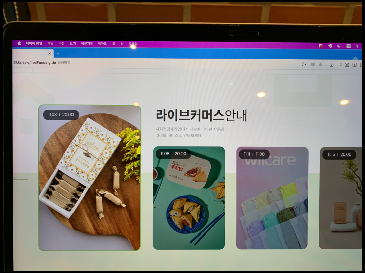 2021 공생마켓 행사에서는 라이브커머스 및 크라우드 펀딩 지원이 진행되는 모습을 볼 수 있습니다. 라이브커머스는 사회적경제기업에서 선보이는 다양한 종류의 상품들을 특정 날짜 및 시간에 조금 더 자세하게 살펴볼 수 있으며 네이버 쇼핑라이브를 통한다고 합니다. 크라우드 펀딩은 와디즈 및 해피빈을 활용했으며 지원을 받고 싶어하는 기업을 돕는다고 볼 수 있을 듯 합니다. 라이브커머스 및 크라우드 펀딩 통해서 더 많은 사회적경제기업들이 퀄리티 좋은 제품을 선보이는데 있어서 긍정적인 동기부여를 얻을 수 있을 듯 합니다. 그와 더불어 소비자 입장에서도 자신만의 취향저격 상품을 찾을 수 있다는 점에서 이로운 점이 있습니다.