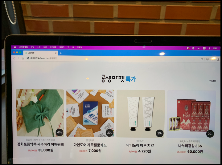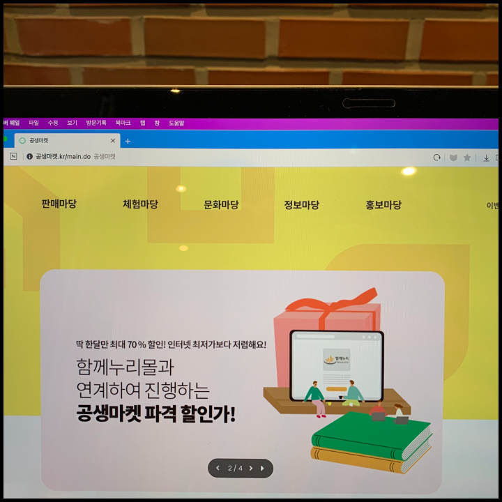 이쯤에서 궁금하실 공생마켓 홈페이지는 공생마켓.kr 입력하셔서 접속하시면 됩니다. 한글로 접속 가능한 홈페이지입니다. 개인적으로 공생마켓 홈페이지 둘러보면서 느꼈던 것은 쇼핑몰 같으면서도 뭔가 차원이 다른 분위기가 나타났습니다. 일반 쇼핑몰은 홈페이지 첫 화면 상단에 할인 프로모션을 강조하는 경우가 많습니다. 더 많은 소비자들을 끌어모으기 위한 의도입니다.