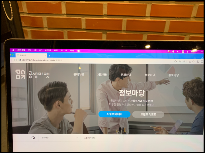 공생마켓 홈페이지에서는 문화마당과 정보마당이라는 공간이 있습니다. 문화마당은 사회적기업에서 선보이는 문화공연을 접할 수 있거나 영화 및 도서리뷰도 볼 수 있습니다. 특히 문화공연 같은 경우 알고보니 유튜브 영상을 통해서 공연을 볼 수 있습니다. 현 시국에 의해 언택트 공연 관람 수요가 늘었는데 이러한 현실이 반영된 듯 합니다. 정보마당은 강연이나 트렌드 자료를 접하는 공간입니다. 강연에서는 컨퍼런스/통역/번역 전문기업 온아시아 이현선 대표의 '스스로에게 잘하고 있다는 믿음을 주는 습관'이라는 영상을 볼 수 있습니다. 트렌드 리포트는 사회적으로 이슈가 되는 현상과 관련된 구체적인 데이터를 볼 수 있습니다.