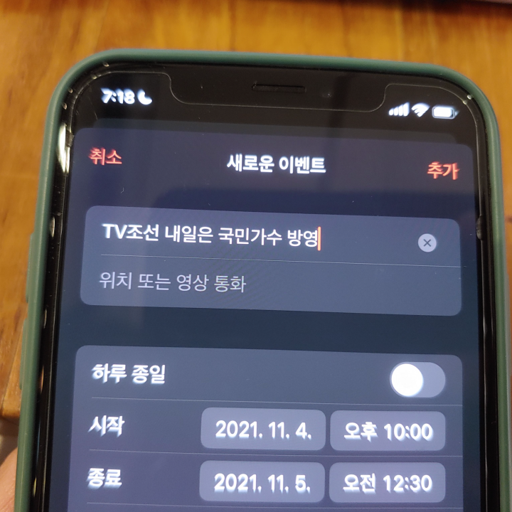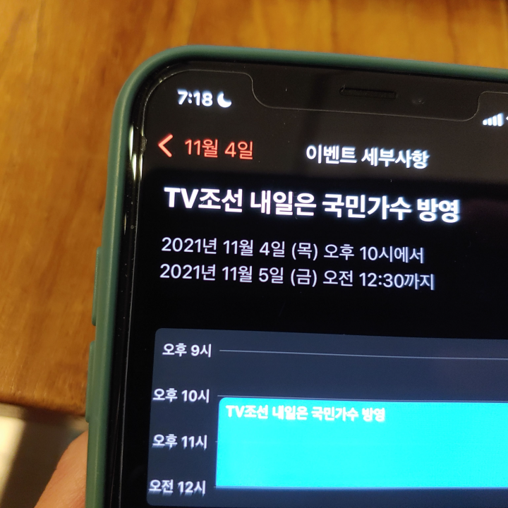 [사진 = 2021년 11월 4일 TV조선 내일은 국민가수 방영 예정입니다. 사진은 저의 스마트폰 달력이며 2021년 11월 4일을 가리킵니다. (C) 나이스블루]