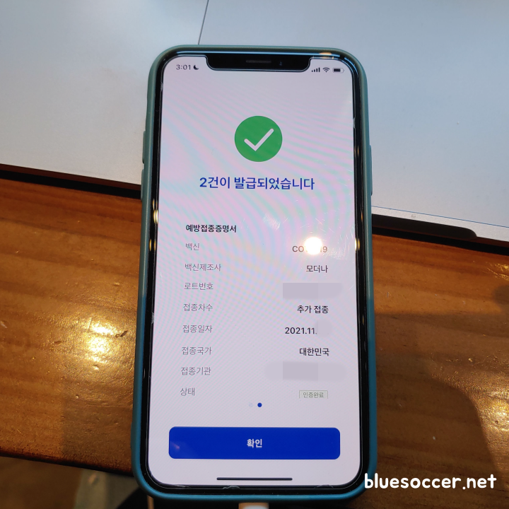 [사진 = 얀센 부스터샷 모더나 백신 접종 완료 후 질병관리청 COOV 앱을 통해서 추가접종 인증을 하게 됐습니다. "2건이 발급되었습니다"라는 문구가 뜨는데 하나는 지난 6월 얀센 백신, 다른 하나는 이번 11월 모더나 부스터샷 백신입니다. (C) 질병관리청 COOV 앱]