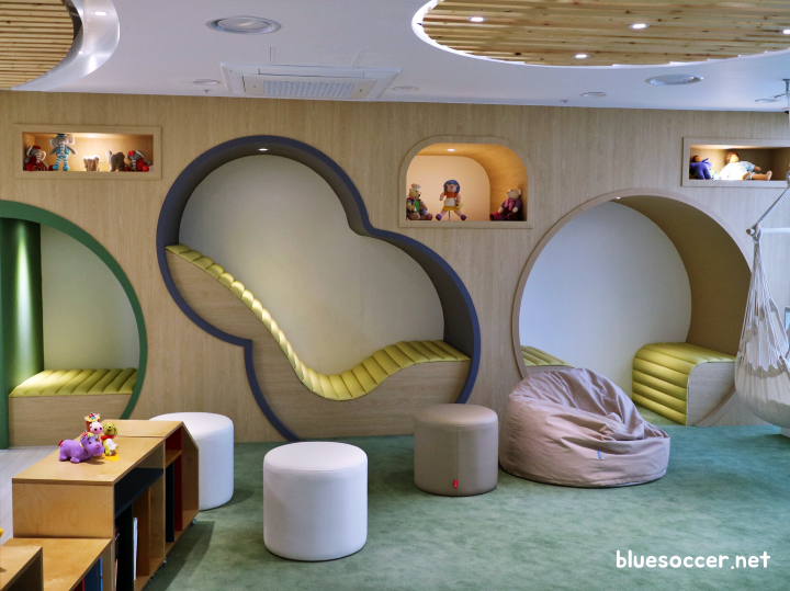 3층으로 내려오니 어린이에 친화적인 분위기가 더욱 짙었습니다. 해먹과 더불어 누워서 휴식을 취할 수 있는 공간이 마련됐습니다. 그와 더불어 다양한 놀이를 할 수 있을 것 같아 보입니다. 이곳에는 요리실, 방송크리에이터실이 있습니다. 아동이 무언가를 직접 하면서 새로운 것을 익히기 좋은 공간이라 할 수 있습니다.