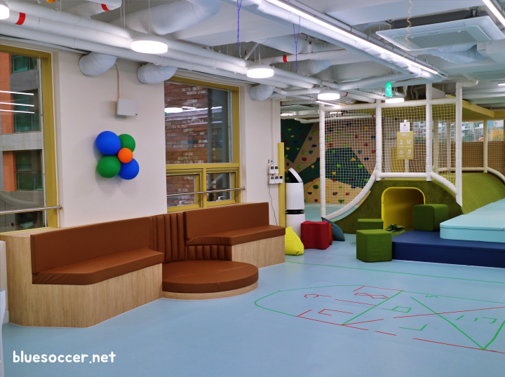 2층은 한마디로 놀이터 같았습니다. 트램펄린이나 미끄럼틀 같은 흥미 넘치는 놀이기구들이 마련됐습니다. 특히 트램펄린은 종로 및 서대문구 돌봄시설 이용하는 아동들의 설문조사를 통해서 가장 선호했던 놀이시설 1위였다고 했는데 그것이 반영되어 이곳에서 트램펄린이 생겼습니다. 이곳이 거점형 키움센터이기 때문인지 아동들의 의견 반영에 얼마나 적극적이었는지 알 수 있습니다.