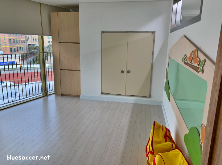 5층으로 내려가면 놀이 관련 아이템들이 다양하게 마련된 것이 눈길을 끌었습니다. 실제로 다목적실이 있는데 여러 가지 놀이 활동을 할 수 있다고 합니다. 공간과 공간 사이에 무빙월이 설치되어 있기 때문에 이곳에서 시간 보내는 아동들이 특정 활동을 편리하게 하도록 탄력적인 공간 활용을 할 수 있을 것으로 보입니다.