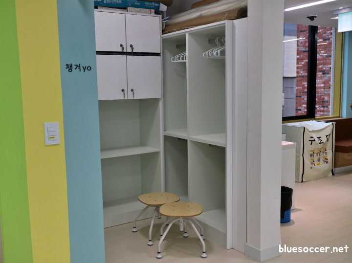 4층으로 내려갔더니 물건과 의류 보관하는 공간이 있습니다. 이러한 공간은 다른 층에도 있습니다. 그래서인지 거점 3호 센터의 전반적인 분위기가 더욱 깨끗하게 보였습니다. 아동 입장에서는 정리정돈에 대하여 배울 수 있기 때문에 알고보면 유익한 공간이라 할 수 있습니다.
