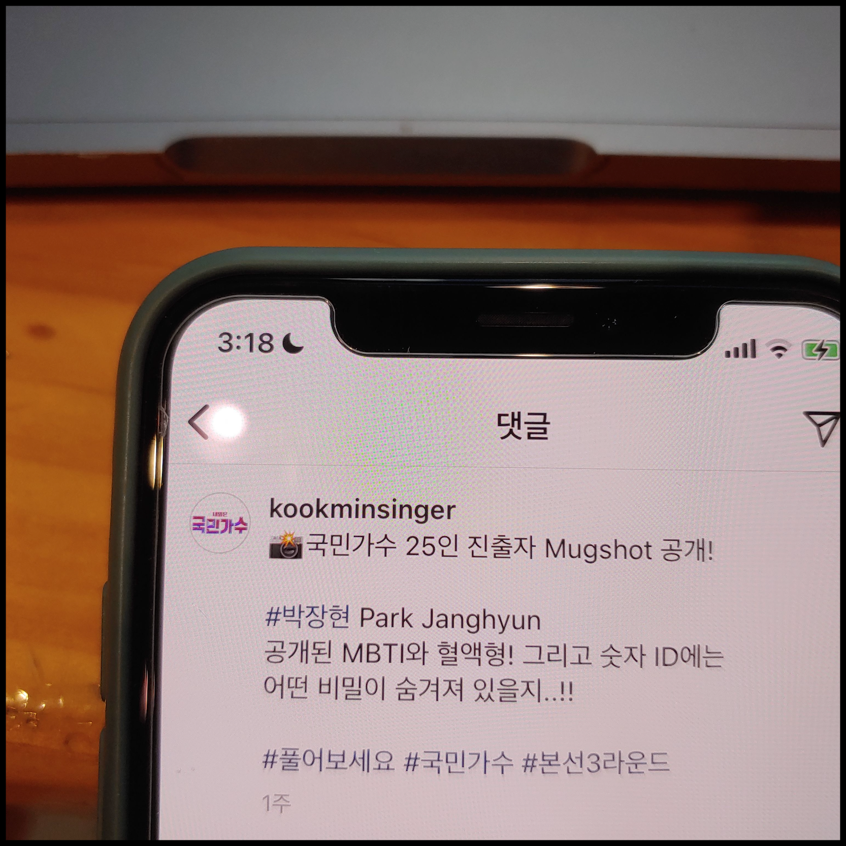 [사진 = 국민가수 공식 인스타그램에서는 박장현 본선 3라운드 진출 알리는 게시물을 올렸습니다. 박장현은 본선 3라운드 1차전 국민콘서트 경연에서 고은성, 손진욱, 조연호, 하동연과 함께 무쌍마초 팀의 멤버로 활약함과 더불어 팀의 대장을 맡았습니다. 2차전 대장전에서는 무쌍마초 팀을 대표해서 무대에 오를 예정입니다. (C) TV조선 국민가수 공식 인스타그램]