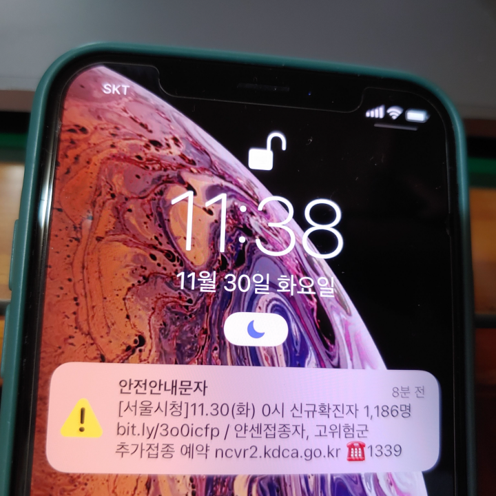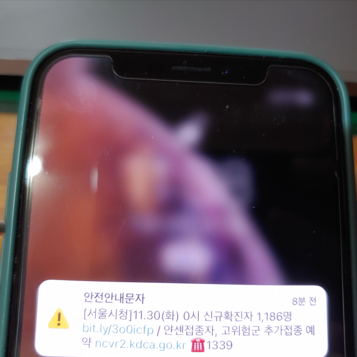 [사진 = 11월 30일 0시 기준으로 서울의 신규확진자는 이렇습니다. 현재는 얀센접종자 및 고위험군 대상으로 추가접종 예약할 수 있다고 안내되어 있습니다. 사진은 저의 스마트폰입니다.]
