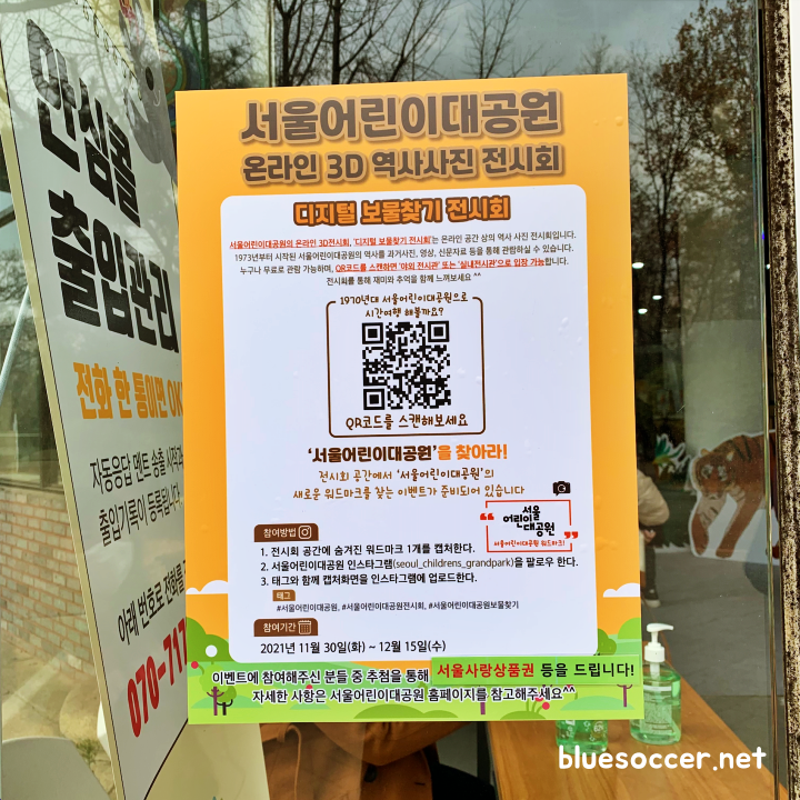 이번에는 팔각당으로 이동했습니다. 팔각당은 서울어린이대공원 디지털 보물찾기에 재현된 곳입니다. 입구에 해당 3D 전시회 접속할 수 있는 QR코드가 있습니다. QR코드 스캔을 통해서 접속할 수 있습니다. 그것도 무료로 말입니다. 서울어린이대공원 디지털 보물찾기 이벤트 참여도 가능합니다. (1) 전시회 공간에 숨겨져 있는 워드마크 1개 캡쳐 (2) 서울어린이대공원 인스타그램 팔로우 (3) 지정된 태그와 함께 캡쳐화면 인스타그램 업로드 형태로 말입니다.(태그는 #서울어린이대공원, #서울어린이대공원전시회 #서울어린이대공원보물찾기) 이벤트는 오는 12월 15일 수요일까지 진행되며 추첨을 거쳐 30명에게 서울사랑상품권 증정 예정이라고 합니다.
