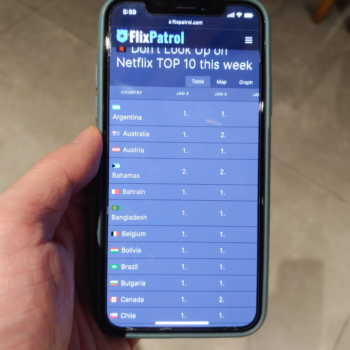 [사진 = 돈룩업 넷플릭스 세계 영화 순위 현재 2위입니다.(1월 10일 기준) 한국 뿐만 아니라 세계적으로 인기 많습니다. 수많은 나라에서 영화 부문 1~2위 기록중이며 한국은 1위로 나옵니다. (C) flixtatrol.com]