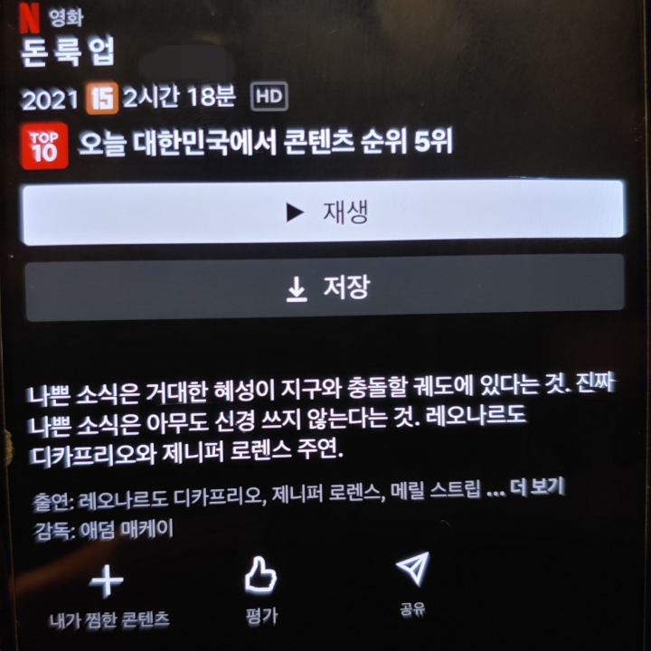 [사진 = 돈룩업 넷플릭스 한국 순위 여전히 상위권입니다. 그만큼 한국에서 넷플릭스 영화 추천 작품으로 지속적인 인기를 얻고 있습니다. 누리꾼들 사이에서 긍정적인 방향으로 입소문을 얻었기 때문에 해당 OTT 통해서 시청하려는 사람이 많습니다. 그 결과 한국 순위가 좋게 나옵니다. (C) 넷플릭스 앱]