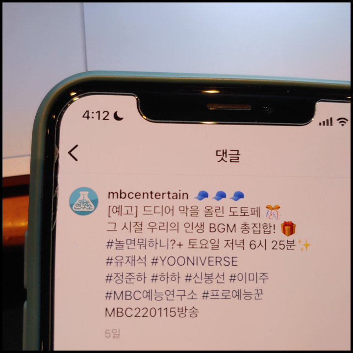 [사진 = 2022년 1월 22일 MBC 놀면 뭐하니 방영 예정입니다. 사진은 저의 스마트폰 달력이며 2022년 1월 22일을 가리킵니다. (C) 나이스블루]