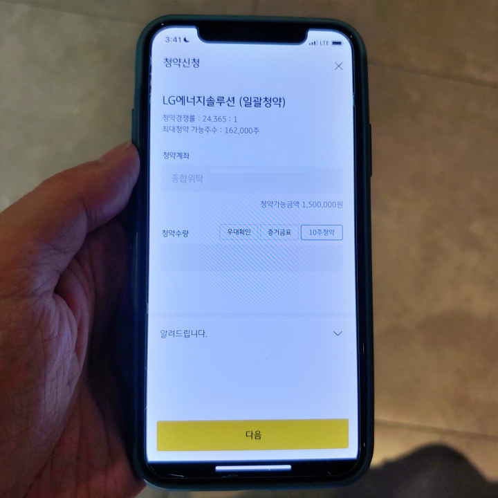LG에너지솔루션 공모주 청약 방법 어떻게 되는지 알고 싶은 분들이 계실 겁니다. 제가 이 포스팅을 작성하는 시점에서는 이미 많은 분들이 신청을 했습니다. 청약 시작한지 3시간 만에 청약 증거금 21조 원, 청약건수 172만 건 넘었다는 소식이 전해졌을 정도로 어마어마합니다. 아직 신청하지 않은 분들도 계실 겁니다. LG에너지솔루션 공모주 균등 배정 및 비례 배정 증권사마다 서로 다르기 때문에 일종의 눈치싸움하는 분들이 적지 않을 것으로 짐작됩니다. 분명한 점은 이번 상황이 코로나 이전에 항공사 특가 티켓 예매하는 것과 전혀 다르다는 점입니다. 선착순으로 먼저 예약하는 것보다 더 중요한 것은 과연 1주라도 더 받을 수 있느냐 여부입니다. 다만, 마감 시간 직전에 사람 많이 몰리니 그 시간대는 피하셔서 청약 하시면 될 듯 합니다.