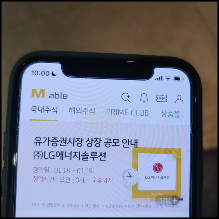 [사진 = LG에너지솔루션 공모주 청약 마감시간은 1월 19일 오후 4시까지입니다.(19일에는 오전 10시부터 시작) 특히 해당일 오후 3시~4시에 청약하려는 분들의 수요가 많이 몰릴 가능성이 있기 때문에 되도록 그 시간대에는 피해주시기 바랍니다. 아울러 LG에너지솔루션 납입 및 환불일 1월 21일 금요일입니다. (C) KB증권 M-able 앱]