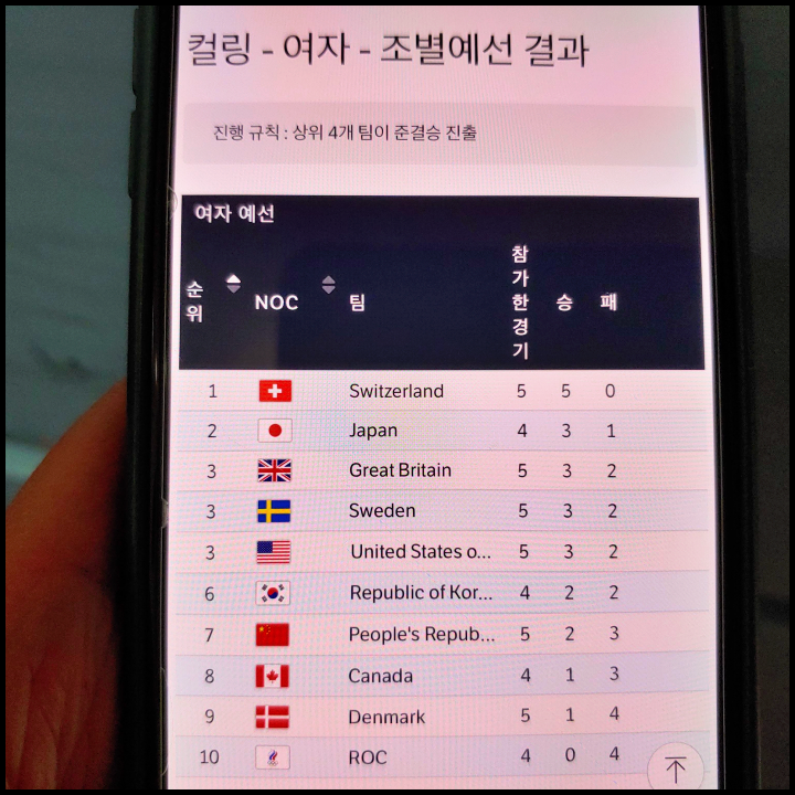 [사진 = 2022 베이징 동계 올림픽 여자컬링 현재까지 순위는 이렇습니다. 일본 2위, 한국 6위입니다. 아직 남은 경기들이 더 있기 때문에 최종적으로 순위가 어떻게 확정될지는 더 지켜봐야 합니다. (C) 2022 베이징 동계 올림픽 공식 홈페이지(olympics.com)]