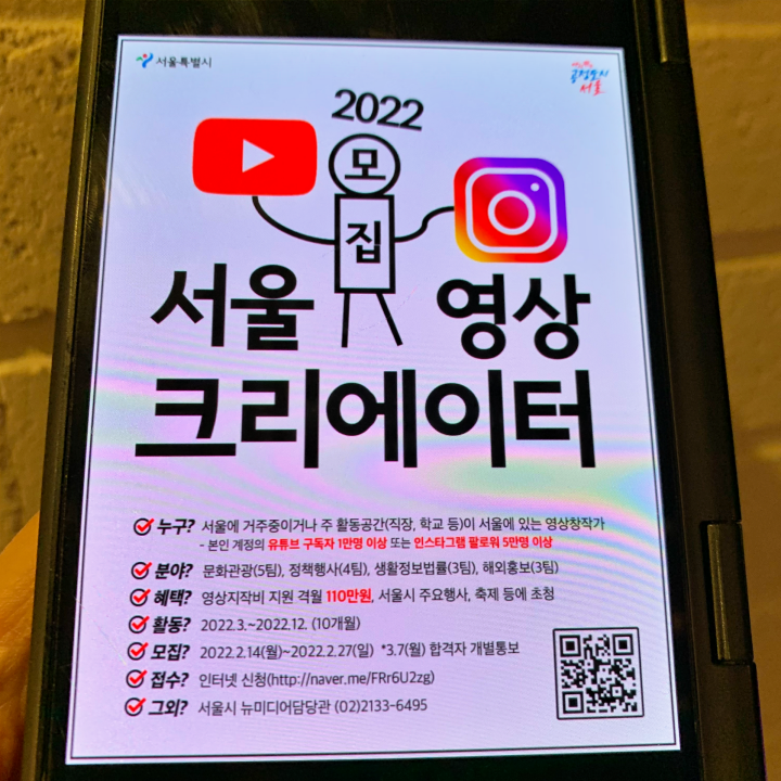 -서울시 매력을 영상으로 담아서 콘텐츠 활동하기! 2월 27일 일요일까지 총 15팀 모집