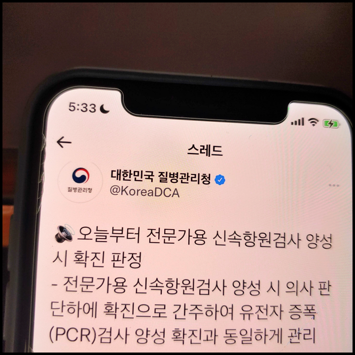 [사진 = 대한민국 질병관리청 공식 트위터에서는 3월 14일과 15일에 걸쳐 각각 전문가용 신속항원검사 양성 시 확진 판정 가능하다는 게시물, 해당 검사가 4월 13일까지 진행된다는 게시물을 올렸습니다. 신속항원검사 방법 관련하여 의사 판단하여 PCR 검사 양성 확진과 동일한 조치가 이루어질 수 있다고 합니다. (C) 대한민국 질병관리청 공식 트위터]