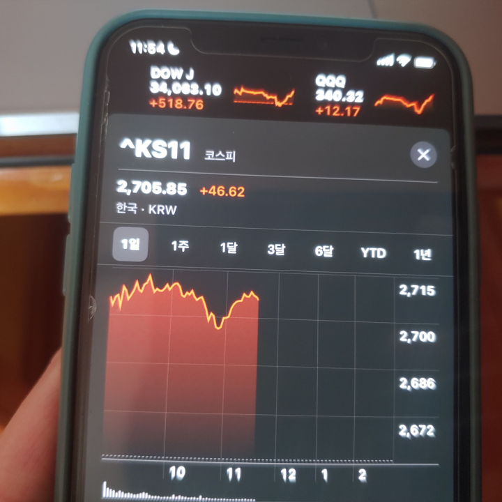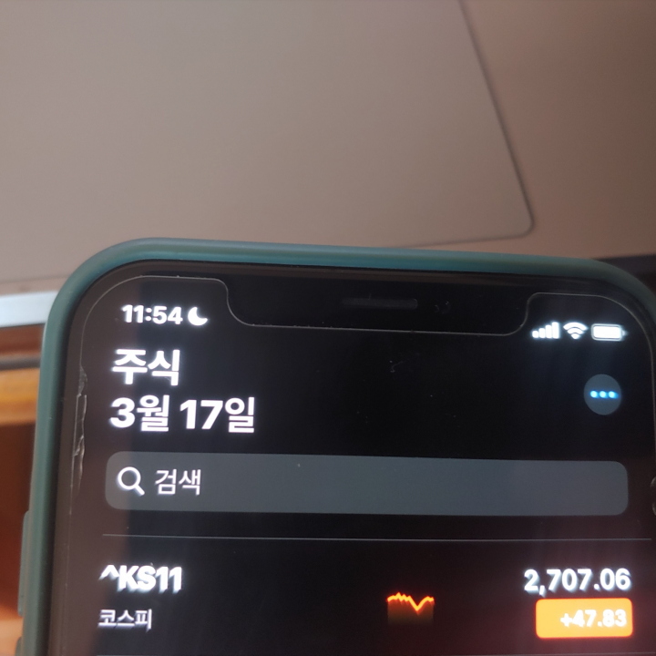 [사진 = 한국의 코스피는 3월 17일 2,700선 되찾았습니다. 그동안 지수가 계속 밀려서 답답함 느꼈던 분들이 많으셨을 텐데 3월 17일에는 모처럼 웃으셨을 듯 합니다. (C) 아이폰 주식 앱]
