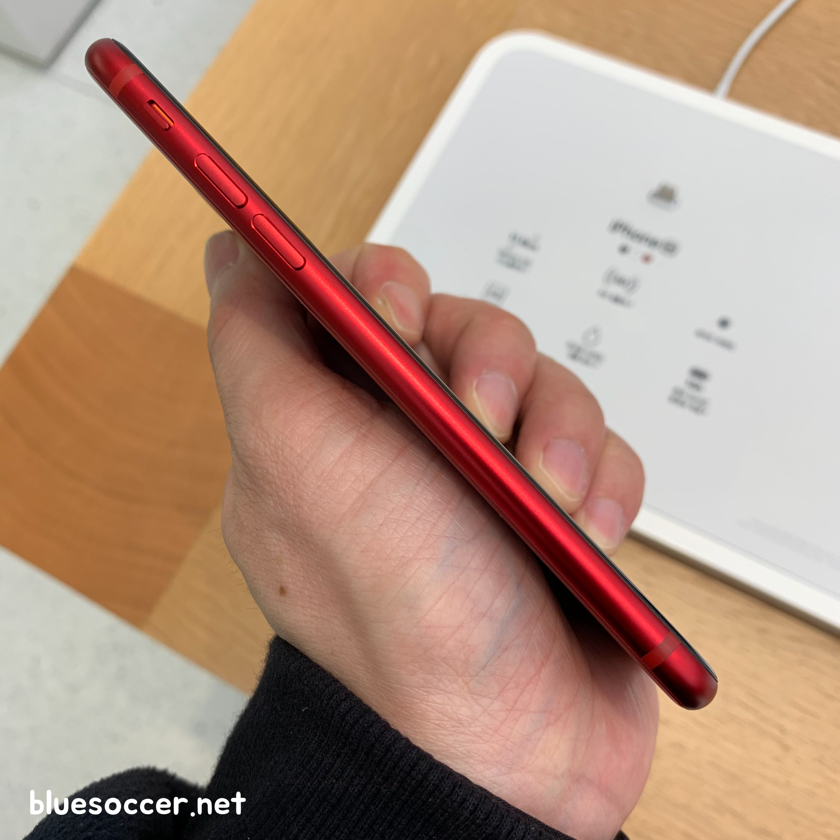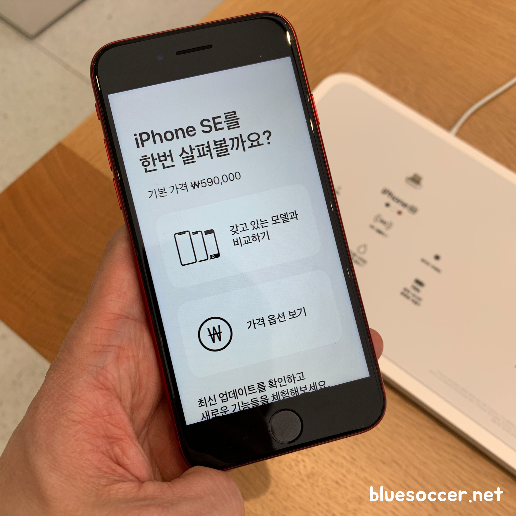 제가 최근에 애플스토어 매장에서 봤던 아이폰se3 레드 모습입니다. 색상 모습이 그야말로 강렬합니다. 정확히는 프로덕트 레드 색상입니다. 그동안 애플에서 꾸준히 선보였던 색상인데 이번 아이폰 신제품에서도 적용됐습니다. 이번 아이폰se3 색상 총 3종입니다. 프로덕트 레드, 스타라이트, 미드나이트입니다. 그중에 스타라이트와 미드나이트는 블랙, 화이트 색상과 거의 유사합니다. 블랙 및 화이트 색상은 그동안 수많은 스마트폰에서 보셨을 겁니다. 물론 스타라이트와 미드나이트가 블랙 및 화이트와는 세부적으로 다른 색상이나 시각적으로는 아이폰se3 레드 색상에 시선이 쏠리기 쉬워보입니다. 개인적인 시선에서 말입니다.