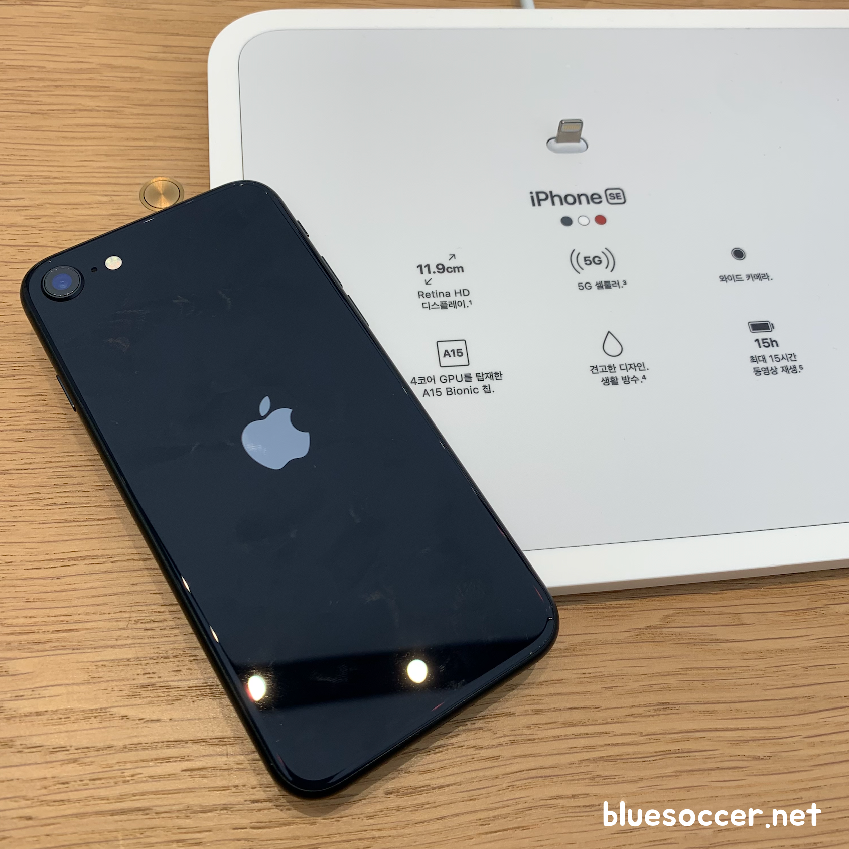 아이폰se3 미드나이트 모델을 봤습니다. 겉보기에는 블랙과 똑같아 보이나 자세히 살펴보면 짙은 블루 느낌이 없지 않습니다. 전형적인 블랙과는 약간 다른 모습입니다. 어찌보면 아이폰se3 블랙 모델로 인식되기 쉬운데 해당 색상이 그동안 수많은 스마트폰에서 많이 봤을 법한 느낌이라 사람들에게 자칫 식상함을 주기 쉬운 부분이 있습니다. 그래서인지 몰라도 애플이 색상을 변형해서 미드나이트라는 모델을 선보이지 않았나 싶은 개인적 생각을 해봅니다. 레드에 비하면 무난하게 선택하기 좋을 만한 모델이 아닐까 싶습니다.