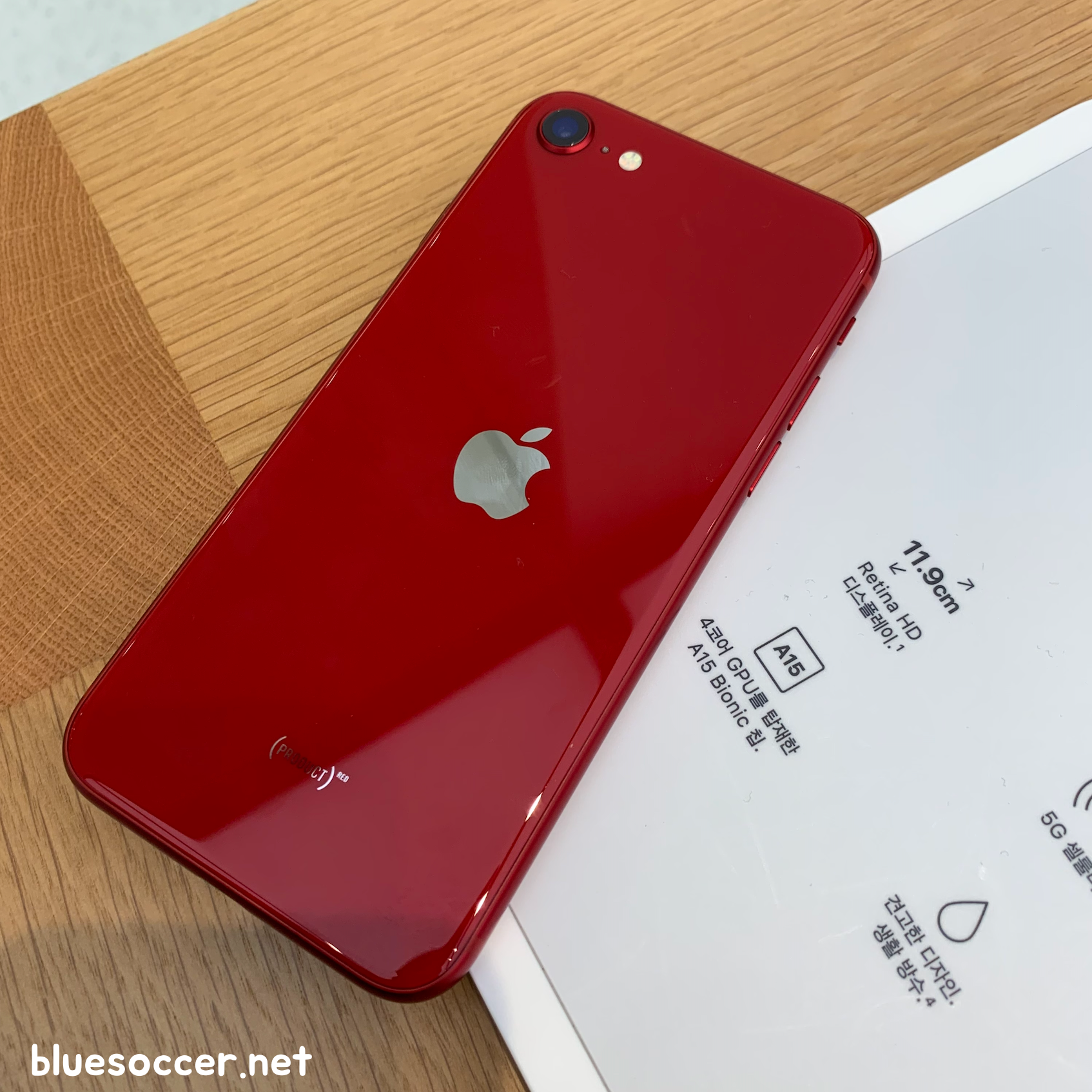 제가 최근에 애플스토어 매장에서 봤던 아이폰se3 레드 모습입니다. 색상 모습이 그야말로 강렬합니다. 정확히는 프로덕트 레드 색상입니다. 그동안 애플에서 꾸준히 선보였던 색상인데 이번 아이폰 신제품에서도 적용됐습니다. 이번 아이폰se3 색상 총 3종입니다. 프로덕트 레드, 스타라이트, 미드나이트입니다. 그중에 스타라이트와 미드나이트는 블랙, 화이트 색상과 거의 유사합니다. 블랙 및 화이트 색상은 그동안 수많은 스마트폰에서 보셨을 겁니다. 물론 스타라이트와 미드나이트가 블랙 및 화이트와는 세부적으로 다른 색상이나 시각적으로는 아이폰se3 레드 색상에 시선이 쏠리기 쉬워보입니다. 개인적인 시선에서 말입니다.