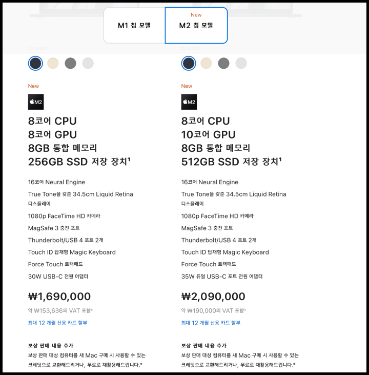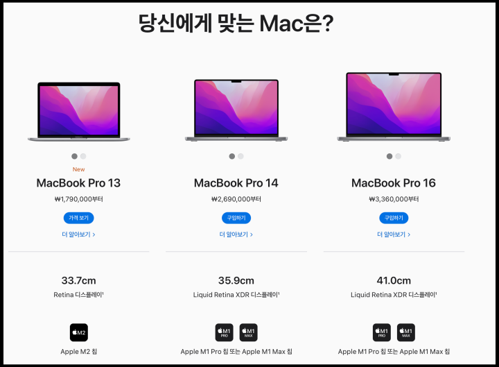 맥북에어 M2 출시일 가격 및 맥북프로 M2 13인치 비교