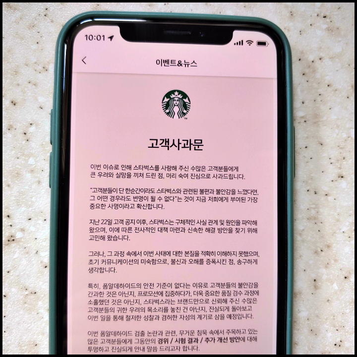 -스타벅스, 7월 28일 사과문 발표...무료 음료 3잔 쿠폰 지급은 오는 8월 31일까지(추가 보상 가능?)