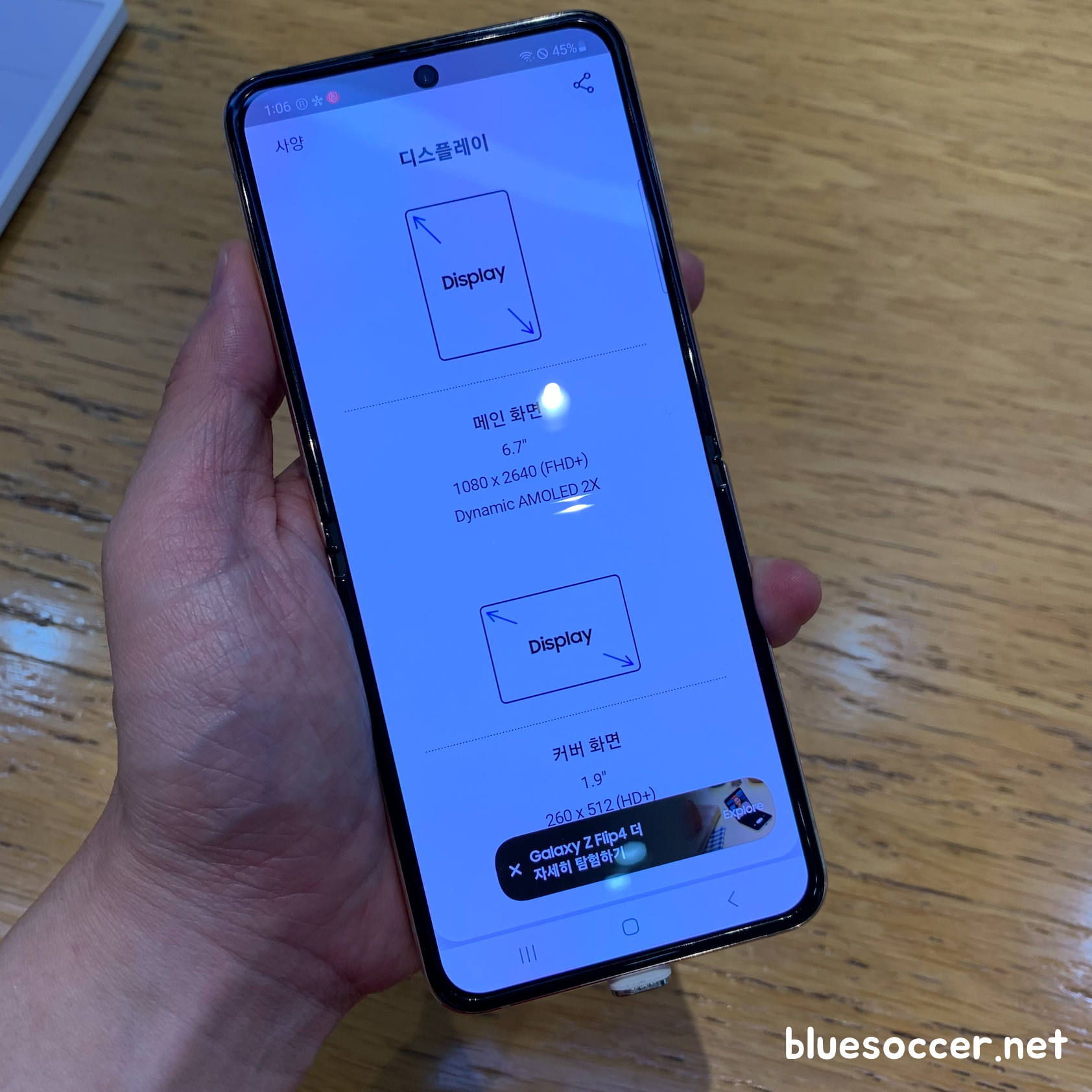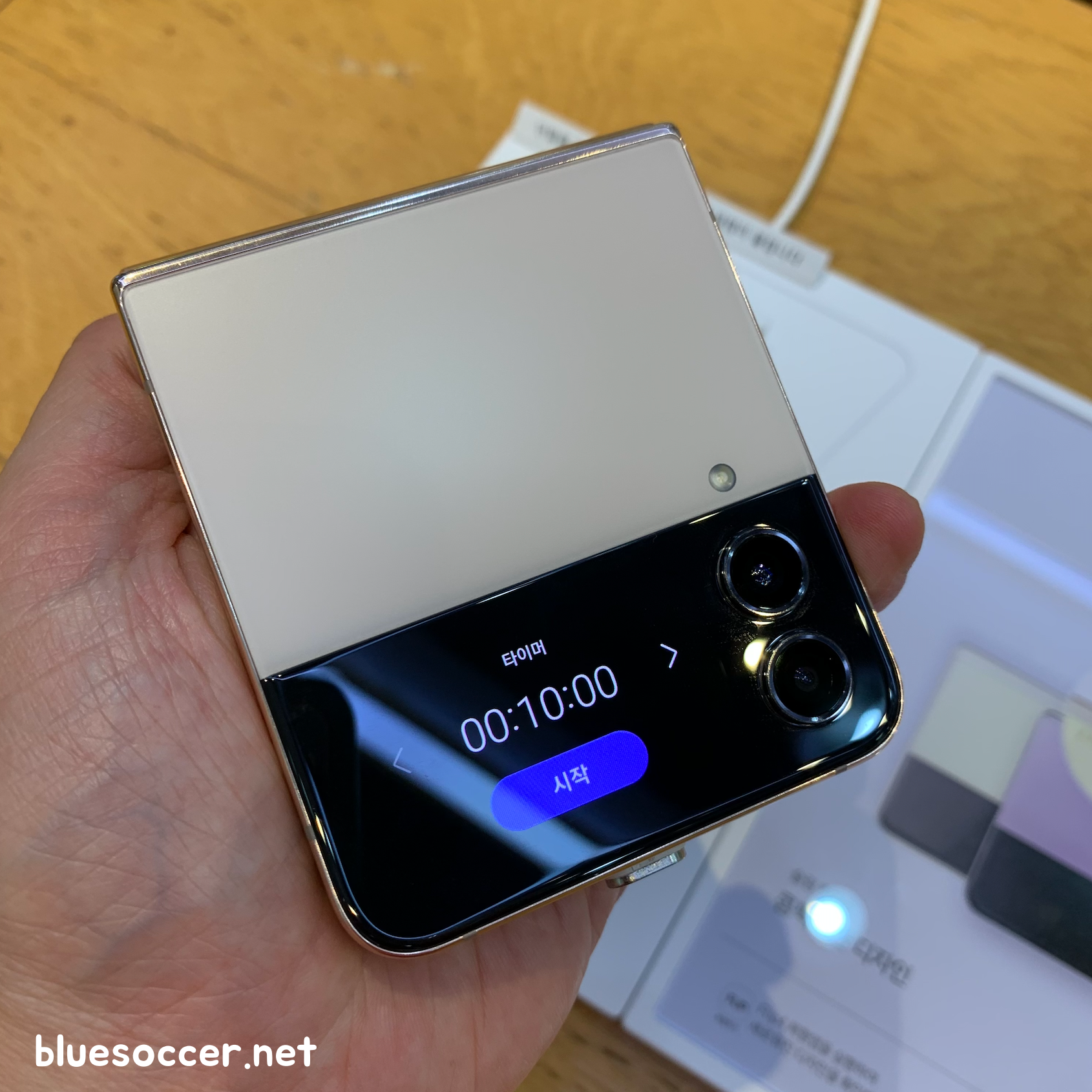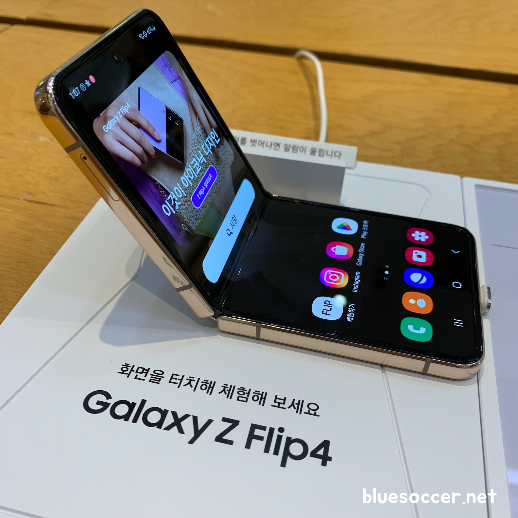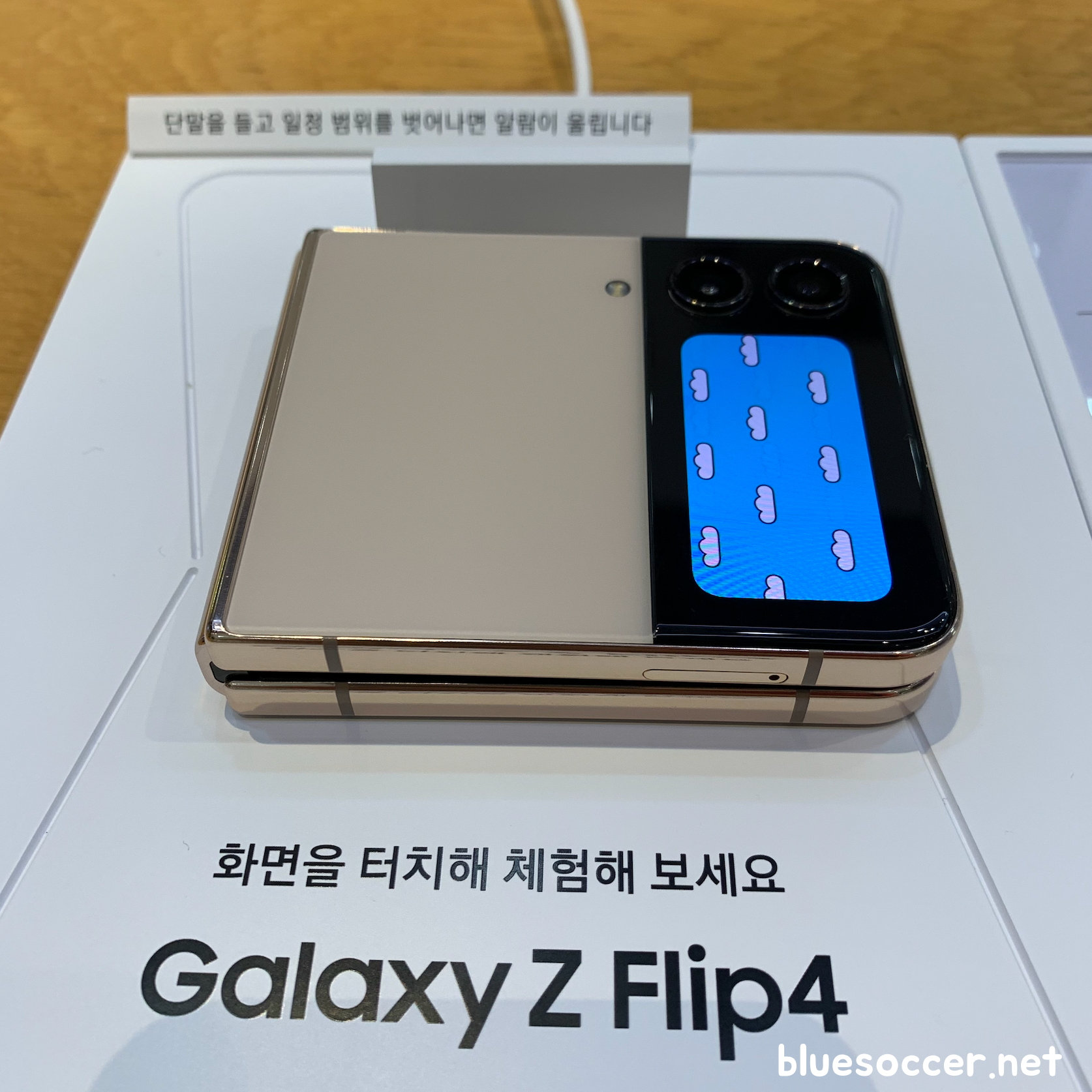 갤럭시 Z플립4 핑크골드 색상 후면입니다. 이제는 전작이 된 갤럭시 Z플립3 크림 색상과 비슷한 느낌 같았습니다. 어쩌면 세부적으로 다르게 보일 수도 있으나 저의 시각이 틀리지는 않았을 것으로 봅니다. 갤럭시 Z플립4 보라퍼플 색상이 Z플립3 라벤더와 비슷했기 때문입니다. 이번에 나온 갤럭시 Z플립4 색상 4종 중에 2종이 전작과 비슷하게 나왔습니다. 그렇기 때문에 이미 전작을 쓰는 분들에게는 Z플립4 향한 관심이 떨어질 수도 있으나 반대로 기존에 사용중인 스마트폰을 최소 2~3년 이상 쓰셨던 분이라면 이야기는 다를 수 있습니다. 새로운 스마트폰 장만하려는 수요가 높기 때문입니다.