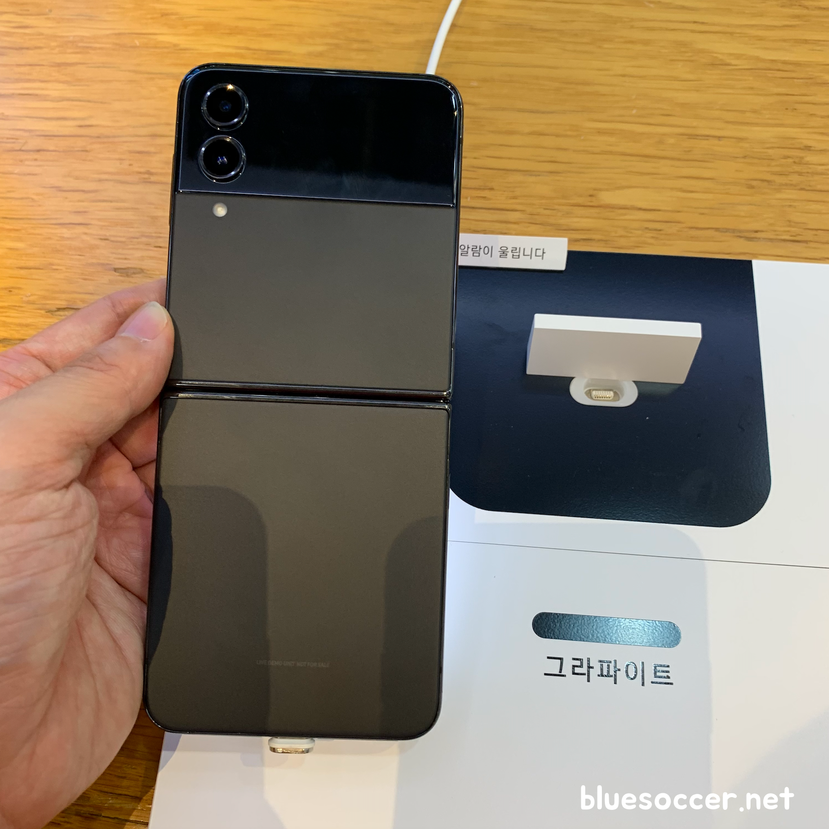 갤럭시 Z플립4 핑크골드 색상 후면입니다. 이제는 전작이 된 갤럭시 Z플립3 크림 색상과 비슷한 느낌 같았습니다. 어쩌면 세부적으로 다르게 보일 수도 있으나 저의 시각이 틀리지는 않았을 것으로 봅니다. 갤럭시 Z플립4 보라퍼플 색상이 Z플립3 라벤더와 비슷했기 때문입니다. 이번에 나온 갤럭시 Z플립4 색상 4종 중에 2종이 전작과 비슷하게 나왔습니다. 그렇기 때문에 이미 전작을 쓰는 분들에게는 Z플립4 향한 관심이 떨어질 수도 있으나 반대로 기존에 사용중인 스마트폰을 최소 2~3년 이상 쓰셨던 분이라면 이야기는 다를 수 있습니다. 새로운 스마트폰 장만하려는 수요가 높기 때문입니다.