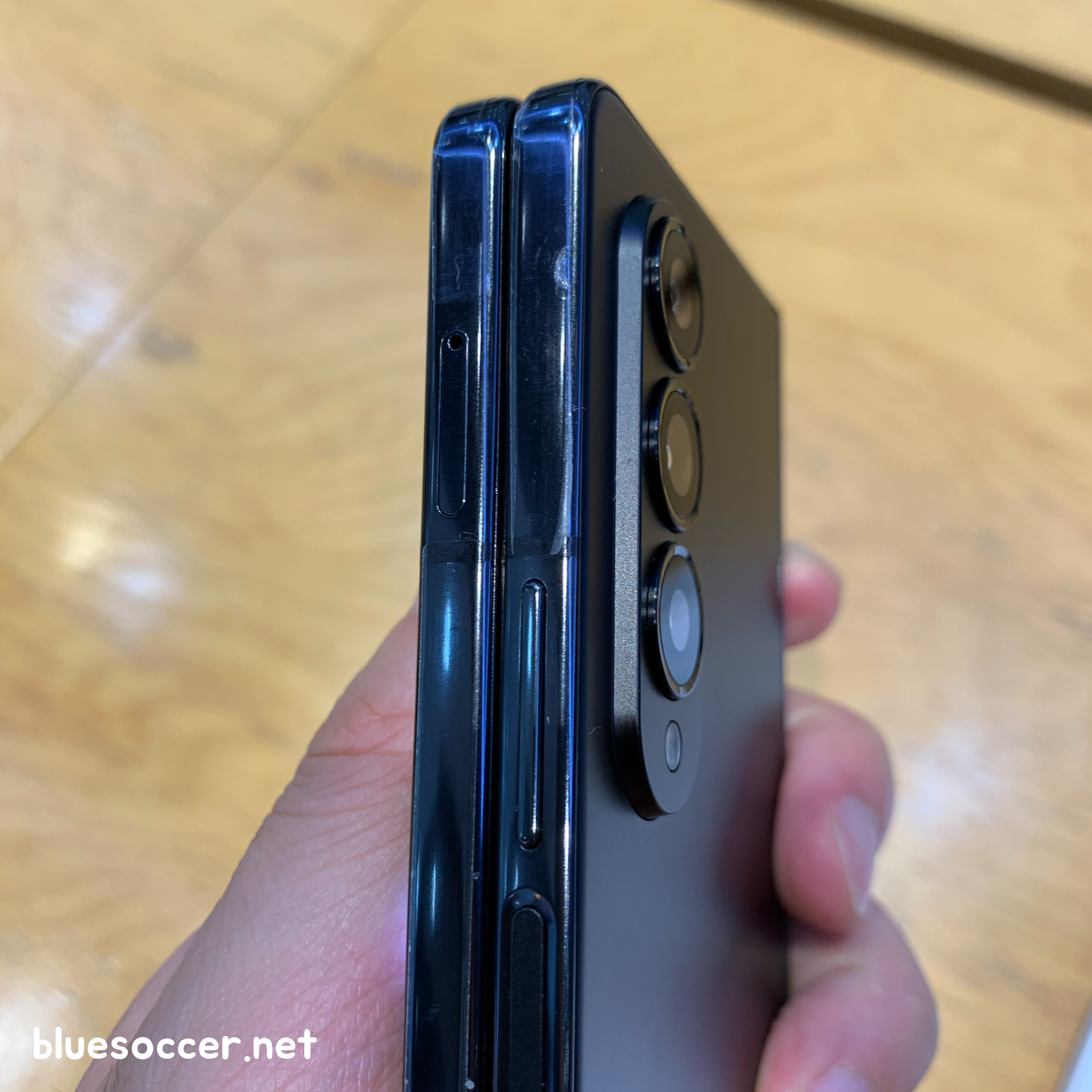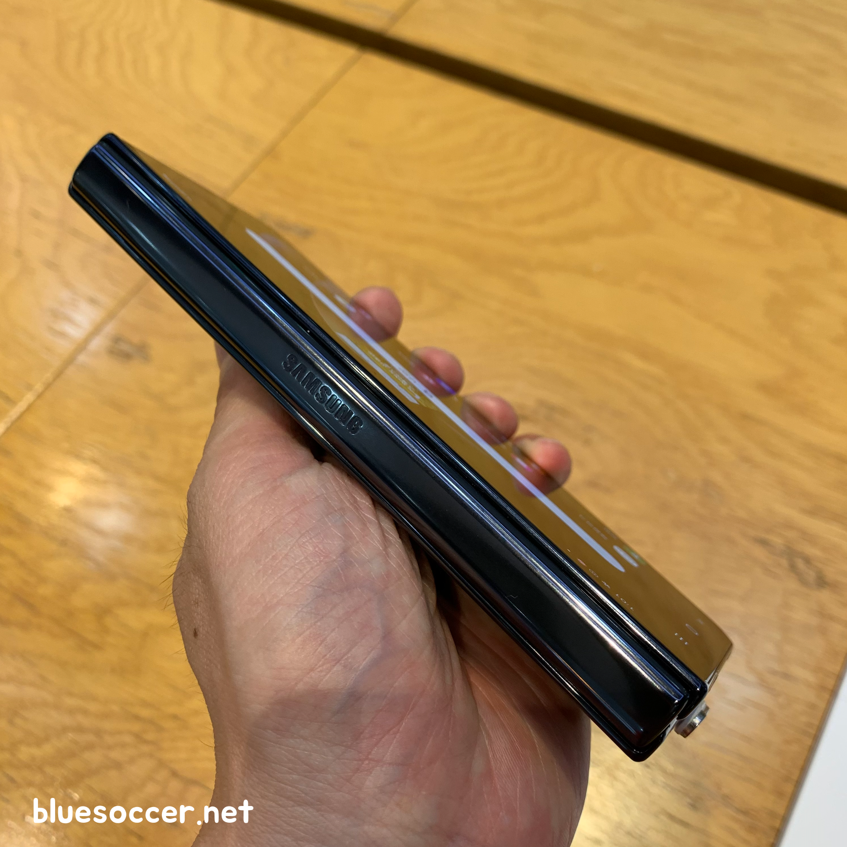 힌지 및 테두리는 이 제품의 색상이 블랙 계열이라 그런지 어둡게 표현됐습니다. 아머 알루미늄 프레임이 적용되었는데 튼튼한 특징을 자랑한다고 합니다. 접히는 스마트폰 특성상 힌지와 테두리가 튼튼한 것이 좋은데 이 제품이 이러한 부분에 대하여 신경썼음을 알 수 있습니다.