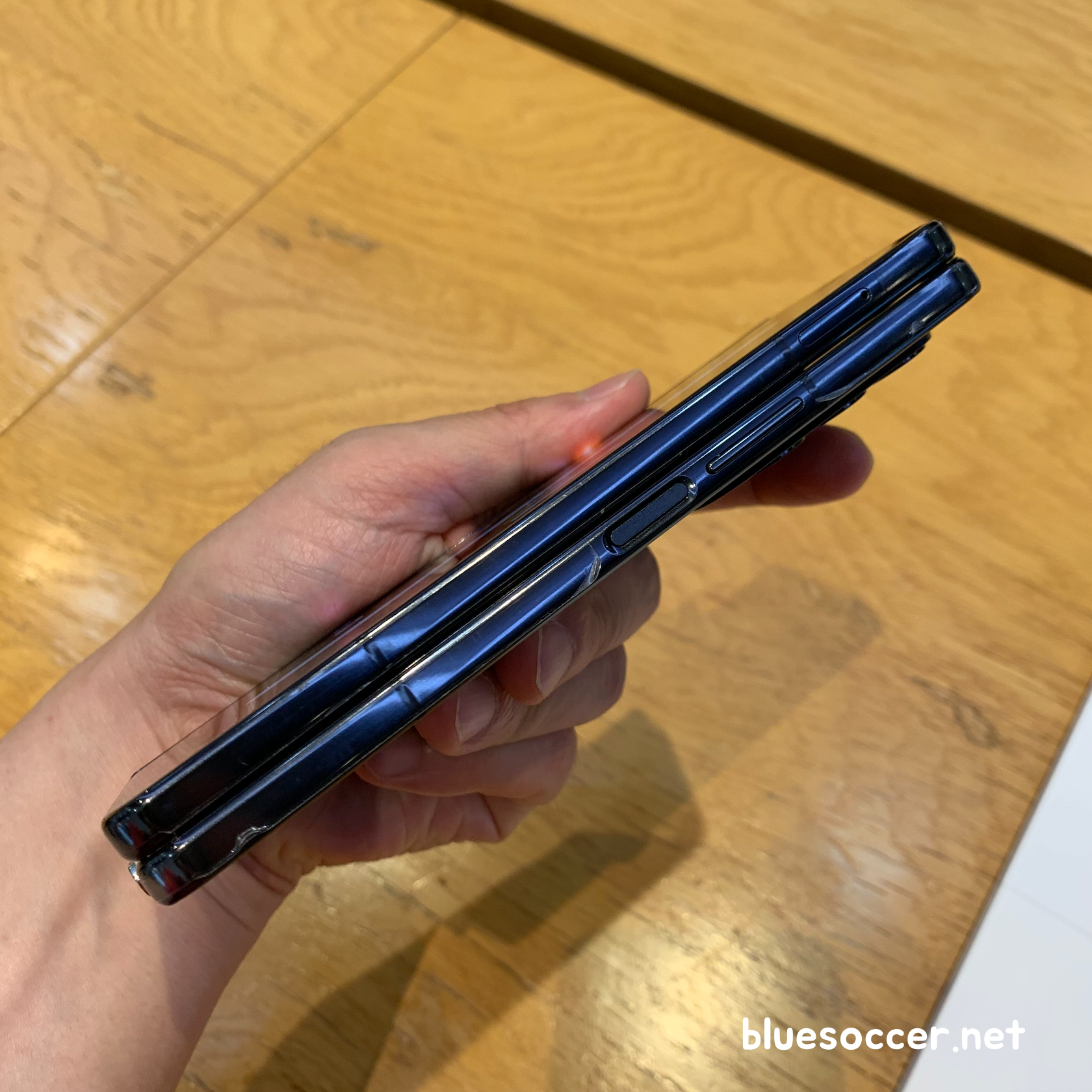 힌지 및 테두리는 이 제품의 색상이 블랙 계열이라 그런지 어둡게 표현됐습니다. 아머 알루미늄 프레임이 적용되었는데 튼튼한 특징을 자랑한다고 합니다. 접히는 스마트폰 특성상 힌지와 테두리가 튼튼한 것이 좋은데 이 제품이 이러한 부분에 대하여 신경썼음을 알 수 있습니다.