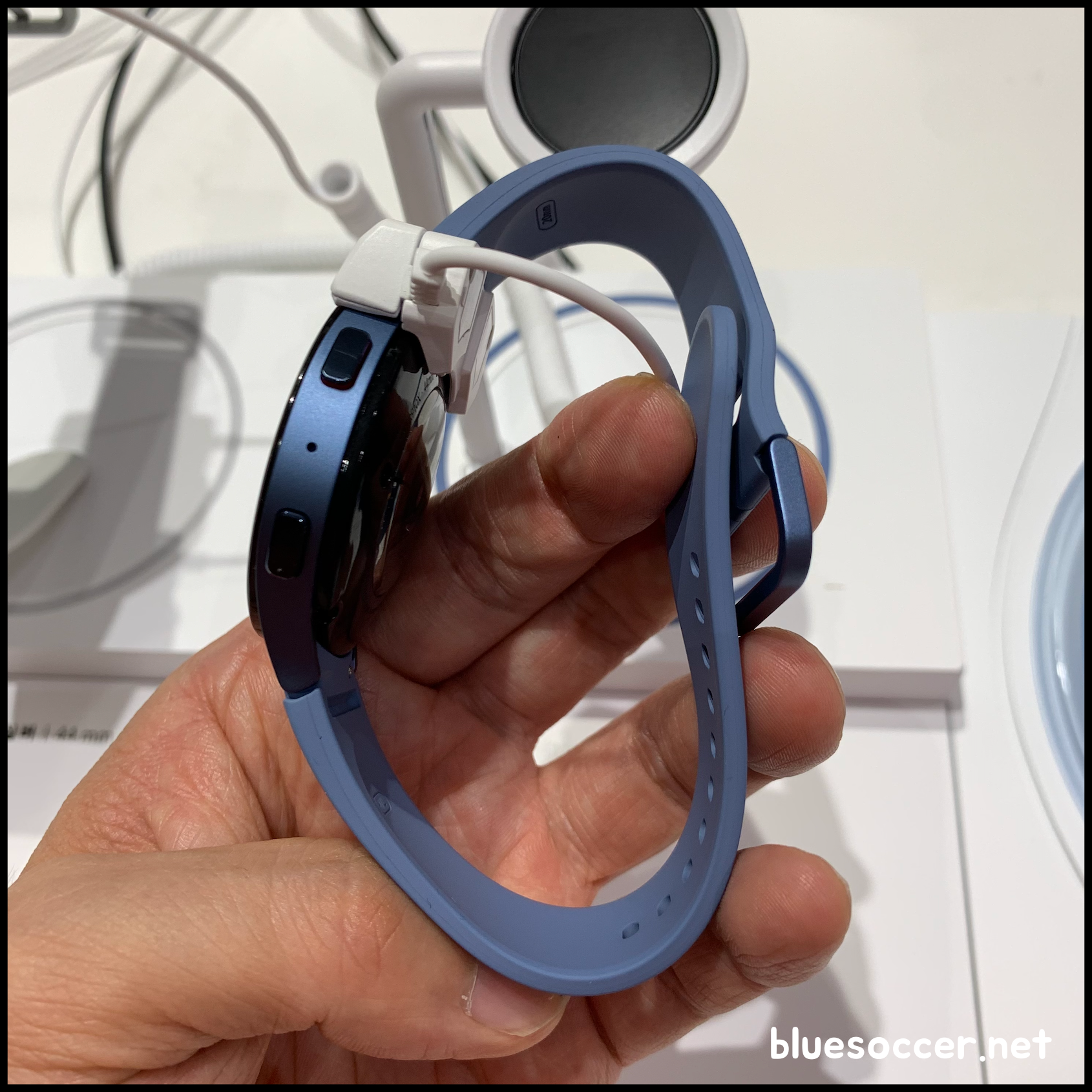 갤럭시워치5 44mm 색상 3종입니다. 사진 왼쪽부터 그라파이트, 실버, 사파이어입니다. 그라파이트와 실버 색상은 40mm에서도 볼 수 있다면 사파이어는 44mm의 한정 색상입니다. 반대로 갤럭시워치5 40mm 핑크골드 색상은 40mm 한정으로 나왔습니다. 갤럭시워치 시리즈의 스트랩에서 블루 빛깔이 있는 제품은 해당 모델이 처음입니다. 평소에 블루 색상을 좋아하는 분들에게는 가장 눈길이 가게 될 제품이 아닐까 싶습니다. 개인적으로도 블루를 좋아하기 때문에 이 제품에 시선이 먼저 갔던 것 같습니다.