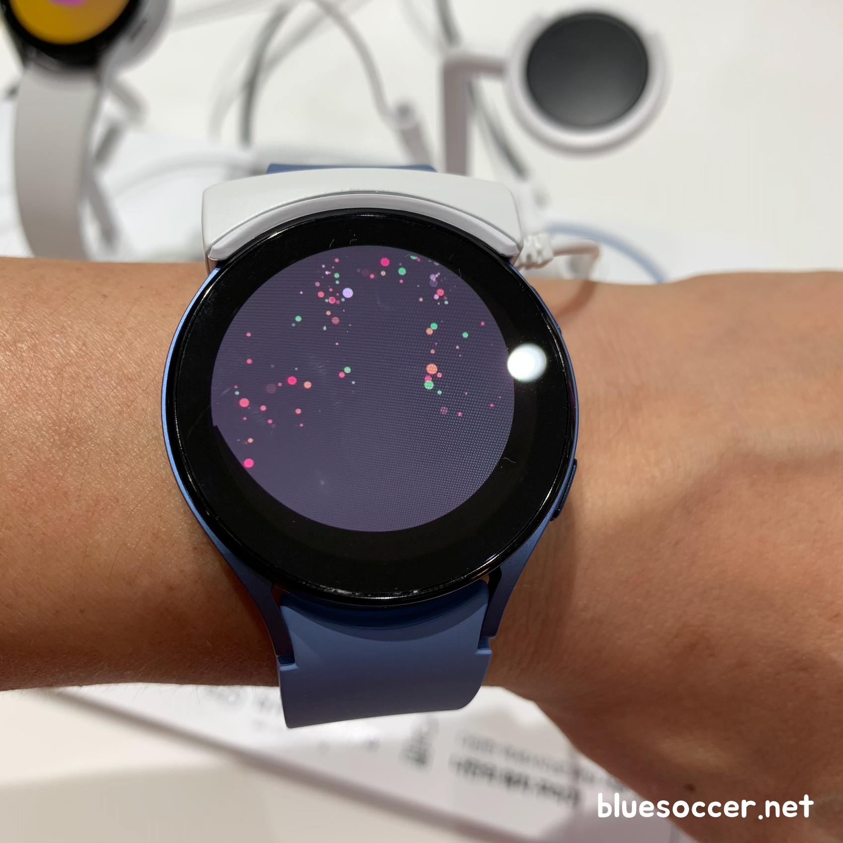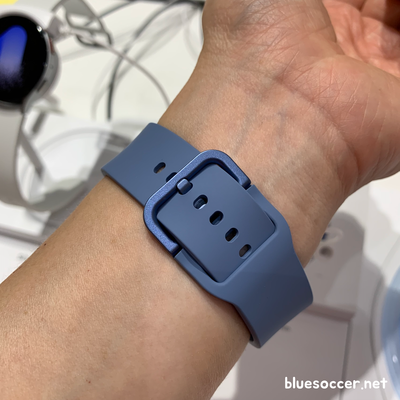 갤럭시워치5 44mm 색상 3종입니다. 사진 왼쪽부터 그라파이트, 실버, 사파이어입니다. 그라파이트와 실버 색상은 40mm에서도 볼 수 있다면 사파이어는 44mm의 한정 색상입니다. 반대로 갤럭시워치5 40mm 핑크골드 색상은 40mm 한정으로 나왔습니다. 갤럭시워치 시리즈의 스트랩에서 블루 빛깔이 있는 제품은 해당 모델이 처음입니다. 평소에 블루 색상을 좋아하는 분들에게는 가장 눈길이 가게 될 제품이 아닐까 싶습니다. 개인적으로도 블루를 좋아하기 때문에 이 제품에 시선이 먼저 갔던 것 같습니다.